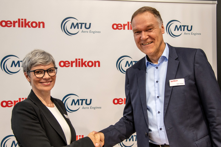 Oerlikon and MTU Aero Engines intend to collaborate on the further development of engine parts, materials, and surface technologies for aero engines. Today at the Paris Air Show, the two companies – represented by Dr. Sven Hicken (CTO of Oerlikon Surface Solutions) and Dr. Silke Maurer (COO at MTU Aero Engines) – signed a five-year agreement to this effect. Both partners will contribute their unique technological know-how and industry expertise to further optimize the efficiency and sustainability of engine parts.